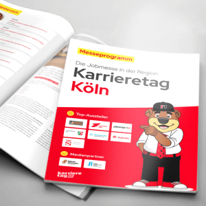 Das jeweilige Messeprogramm wird mit einer Auflage von 3.000 bis 4.000 Exemplaren (je nach Standort) auf den Karrieretagen an jeden Besucher verteilt. Es beinhaltet den Hallenplan der Messe, das gesamte Rahmenprogramm, die Auflistung der Coaches und die namentliche Darstellung inkl. Logos aller Aussteller. Nutzen Sie diese attraktive Werbemöglichkeit und schalten Sie Ihre Anzeige im Messeprogramm.