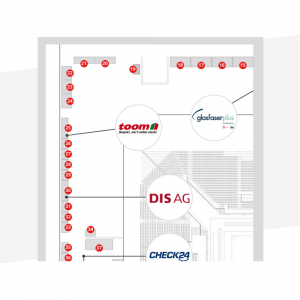 Heben Sie sich von anderen Ausstellern ab! Interessierte Besucher erhalten durch die exklusive Darstellung auf einen Blick Auskunft über die Position Ihres Standes. Bis zu acht Unternehmen können dieses Angebot buchen.