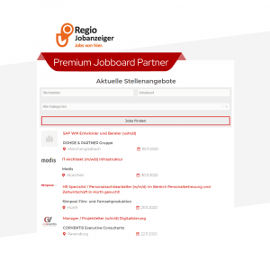 Veröffentlichung Ihrer Stellenanzeige auf unserer Website auf der jeweiligen Städte-Seite z.B. Karrieretag Berlin www.karrieretag.org/berlin im Standard-Anzeigenlayout. Laufzeit: 4 Wochen vor der Veranstaltung bis mindestens 4 Wochen nach der Veranstaltung.