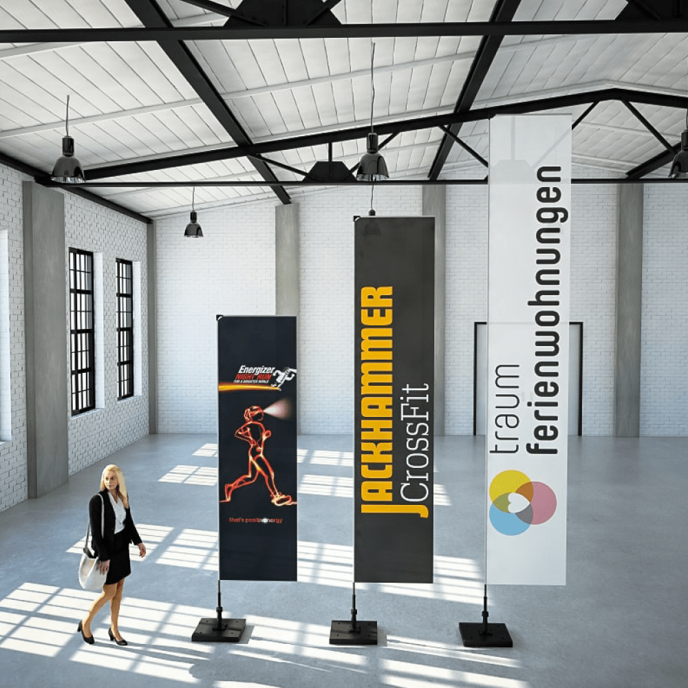 Präsentieren Sie Ihr Unternehmen eindrucksvoll mit der schlanken und hoch aufragenden Squareflag – ein echter Blickfang für jeden Messestand. Hochwertige Materialien und brillante Druckqualität garantieren eine professionelle und repräsentative Wirkung, besonders im Innenbereich. Die Beachflag lässt sich schnell aufstellen, ist flexibel einsetzbar und überzeugt durch einfache Handhabung.