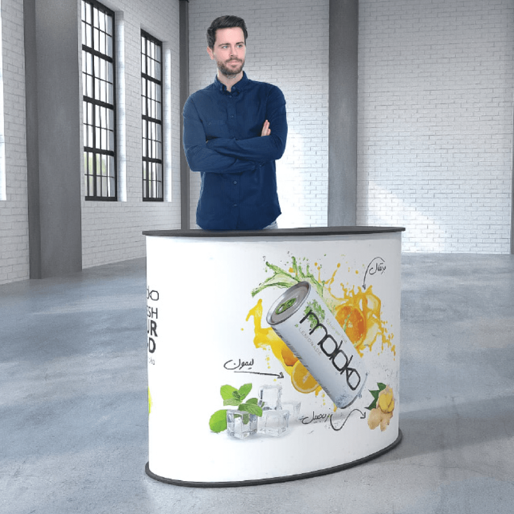 Messetheke München – praktisch & professionell Große Arbeitsfläche und viel Stauraum – ideal für einen einladenden, gut organisierten Messestand. Ein Must-Have für Ihren Auftritt!