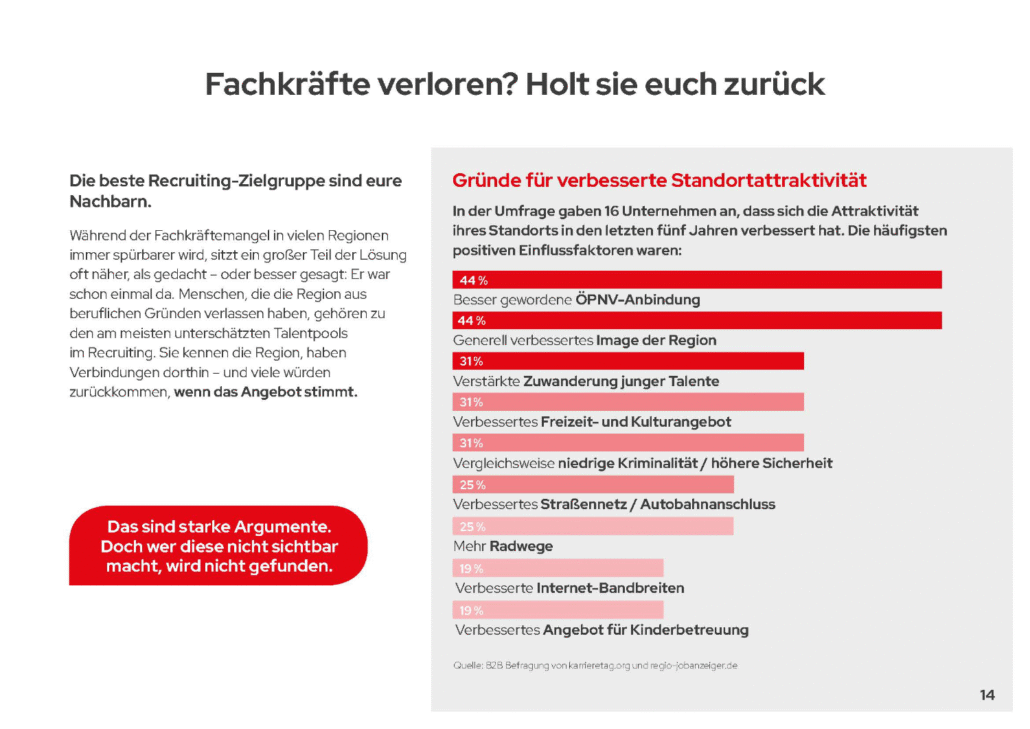Unser neues White Paper zeigt, wie Sie Regionalität gezielt als strategischen Vorteil im Recruiting nutzen können. Mit exklusiven Umfrageergebnissen, praxisnahen Tipps und echten Beispielen aus der Arbeitswelt liefert es Recruitern alles, um Fachkräfte zu gewinnen, zu binden – oder sogar zurückzuholen.